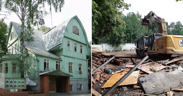 Здание, известное как дача Грачевых, находилось в списке выявленных памятников с 2005 года, то есть ровно 20 лет. В марте 2025 года Мосгорнаследие отказалось включить домик на Воробьевых горах в реестр объектов культурного наследия — и вот через два месяца его уже снесли. «Участок расчищен от всех строений, техника работает прямо сейчас», — пишет «Архнадзор». При этом на информационном щите снос назван противоаварийными мероприятиями. Дом Грачевых был последним сохранившимся жилым зданием древнего села Воробьево, которое в начале XX века облюбовали как дачное место. Настолько старых домов здесь больше нет, не считая храма Живоначальной Троицы. А предлогом для отказа внести дачу в реестр объектов культурного наследия стал ураган 2023 года, поваливший деревья на крышу. Казалось бы, вот проблема — крышу можно залатать, было бы желание. Тем более что историко-культурный экспертный совет при Москомнаследии еще в 2009 году отмечал, что здание в стиле модерн обладает архитектурно-художественн