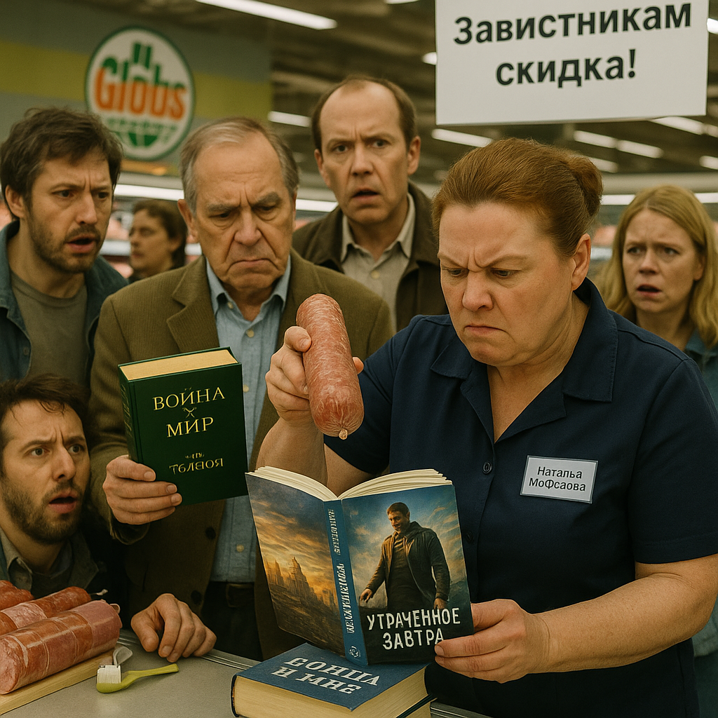 Ах, дорогие мои книголюбы, сегодня у нас спектакль по мотивам ваших комментариев — яркий, ядовитый и немного безумный. Занавес поднят, свет погашен, а на сцене уже начался парад читательского остроумия и беспощадности. Пристегнитесь! Начнём с комментария нашего искателя глубины из группы «Каверы на гитаре и не только», который нежно заявил: «Лукьяненко единственный пытается писать глубокомысленное». Ну, как говорится, кто на что учился. Только тут же появляется строгий Николай Лейко и мрачно резюмирует: «Писатели — это Толстой и Достоевский, а это...» Ну, вы поняли, Николай взял высоко, но не слишком ласково. Коллега, да это же почти афоризм, берите авторские! Но, конечно, всех победила Наталья Морозова. Сама доброта и великодушие: «Пожалуй, поеду в Глобус, куплю. Автора писаний, тупого завистника — нах!» Ну что сказать, Наталья, даже завистник был приятно удивлён такой нежностью. Колбасный отдел, вероятно, содрогнулся. Далее у нас эпичная битва вокруг творчества Виктора Дашкевича. Ga