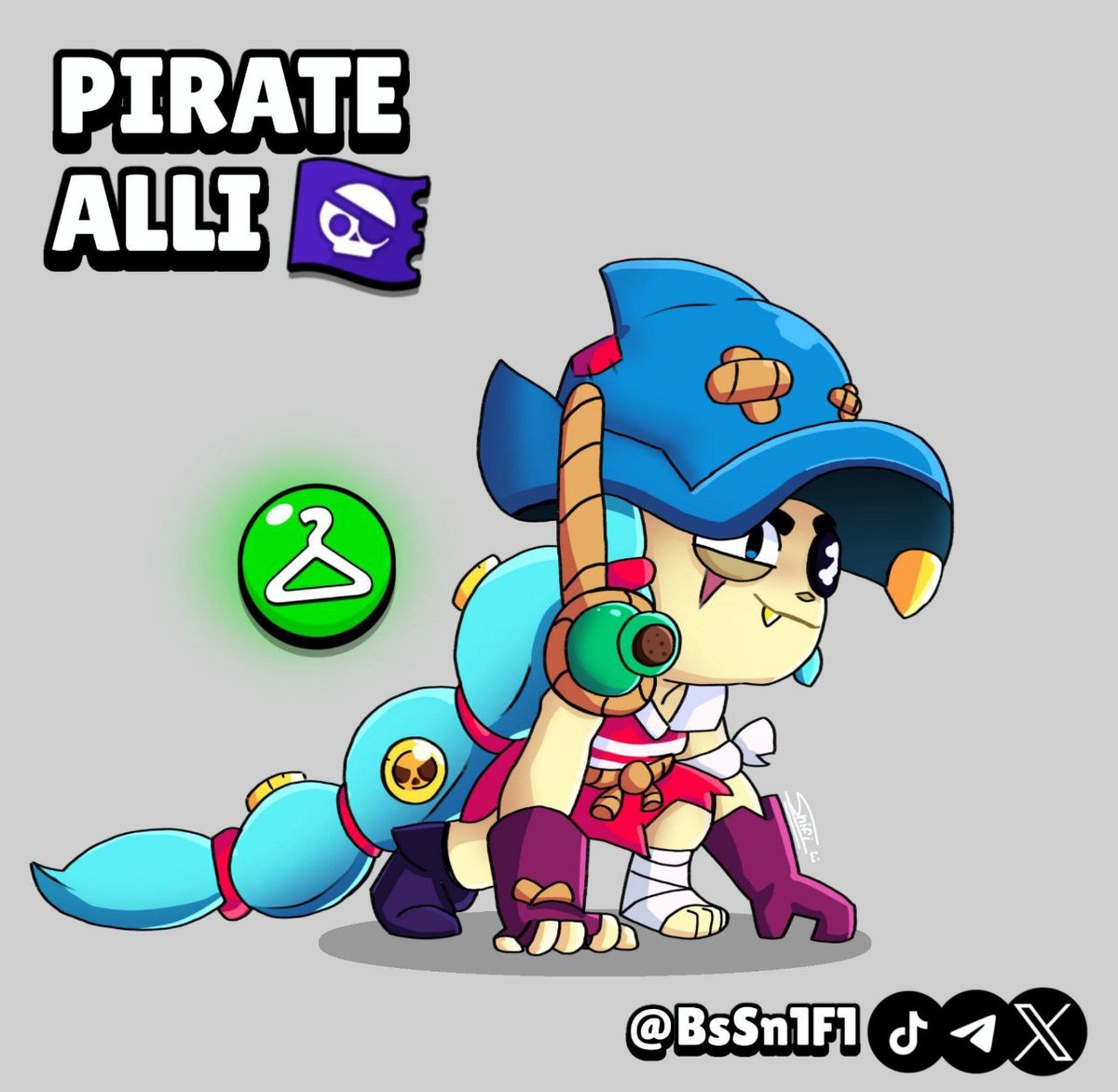 ⚡️Концепт скина «Пират Алли» Новый боец еще не вышел, а фанаты уже клепают на него скины: посмотрите, какой классный скинчик придумал обычный игрок: Что скажите? ✅Новости по Clash Royale - ТЫК Мир Supercell. Подписаться