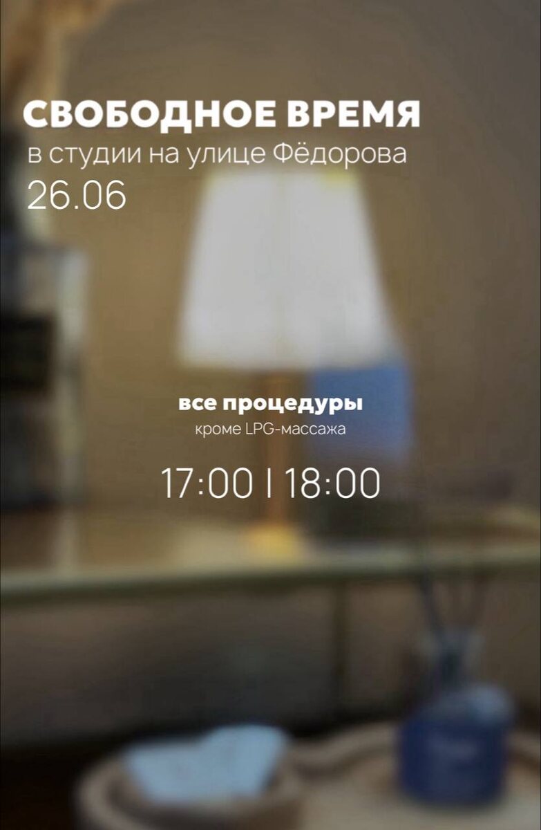 СВОБОДНОЕ ВРЕМЯ НА ФЁДОРОВА 26.06 • ONLINE запись • WHATSAPP Ждём вас к нам на процедуры 🤍