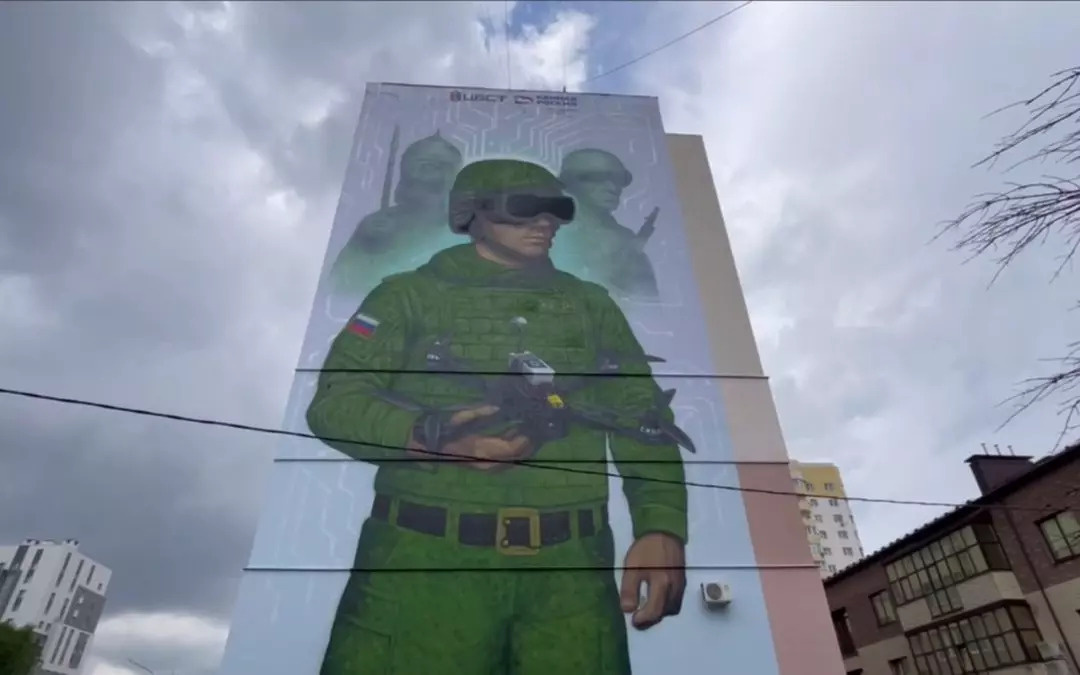 На одном из жилых домов в Ленинском районе Воронежа (ул. 20-летия Октября, 64) появилась впечатляющая художественная композиция, посвященная защитникам Отечества. Монументальное изображение, созданное в рамках проекта «Историческая память», соединило в себе три символических образа. Художники изобразили древнерусского богатыря, олицетворяющего многовековые традиции воинской доблести, солдата Великой Отечественной войны как дань памяти героизму предков и современного бойца СВО с беспилотником «Скворец», демонстрирующего технологический потенциал российской армии. Инициатором проекта выступил депутат Государственной Думы Александр Сидякин. Как отметил политик, идея мурала родилась в сотрудничестве со специалистами Центра беспилотных систем и технологий, что позволило достоверно отразить современные элементы вооружения. Композиция уже стала местом притяжения для жителей города. Особый интерес у воронежцев вызывает изображение беспилотника «Скворец» – современного комплекса разведки и наб