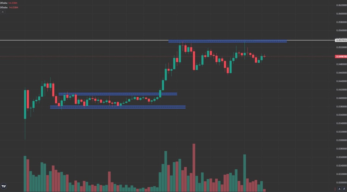 Продолжаем двигаться на объемах, сформировали горизонтальный уровень 0,054.