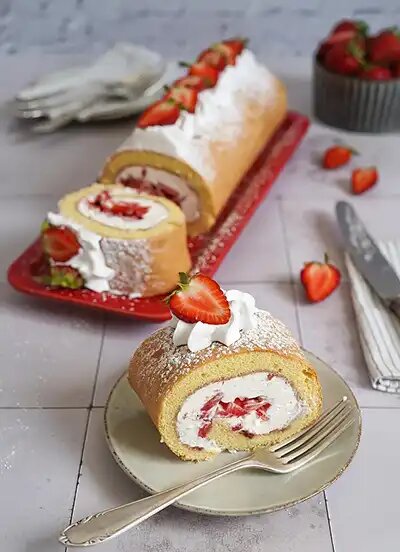 Попробуйте приготовить бисквитный рулет с кремовой начинкой и клубникой. Такой рулет готовить просто, а получается вкусным. Это отличное дополнение семейного чаепития или праздничного зпстолья. Его также можно приготовить и на день рождения ребенка. Вот рецепт бисквитного рулета с клубникой. Продукты необходимые для приготовления: