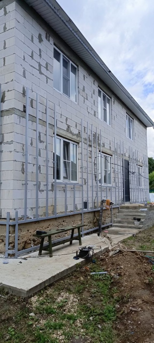 Рабочий vlog/сегодня у нас новый объект по обшивке двух этажного дома сайдингом ю пласт кирпич песочный... Цоколь профлист шоколад. За сегодня обрещетили профилями три стены завтра начнем утеплять стены утеплителем изорок пятерка...