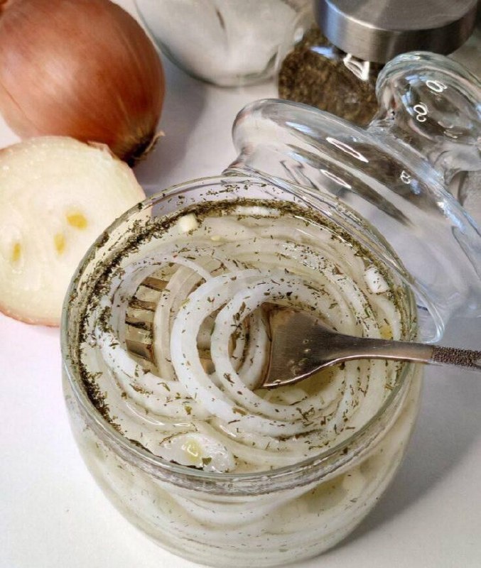 МАРИНОВАННЫЙ ЛУЧОК Ингредиенты: Лук - 4-5 шт Чеснок - 2-3 зубчика Уксус - 2-3 ст.л Растительное масло - 5 ст.л Сахар - 2-3 ч.л Лавровый лист Перец чёрный Сухая зелень петрушки и укропа Соль - по вкусу ⠀ Приготовление: Лук нарезаем кольцами или полукольцами Складываем нарезанный лучок в гламурную посудку. Добавляем сухую зелень петрушки и укропа. Далее лавровый лист. Следом сахар. Перец/соль по - вкусу. Заливаем уксусом. Хорошенько перемешиваем. Далее обжариваем наш чеснок на растительном масле. До золотистого цвета со всех сторон. Заливаем наш лук КИПЯЩИМ маслом (это собьет горечь), после убираем чеснок из лука,можно и оставить - как пожелаете и опять же хорошенько перемешиваем. Лук готов, перекладываем его в баночку и храним в холодильнике. Лук получается очень вкусным,им можно и отбивную посыпать и в салатик добавить, а можно и просто так с хлебушком свежим покушать!