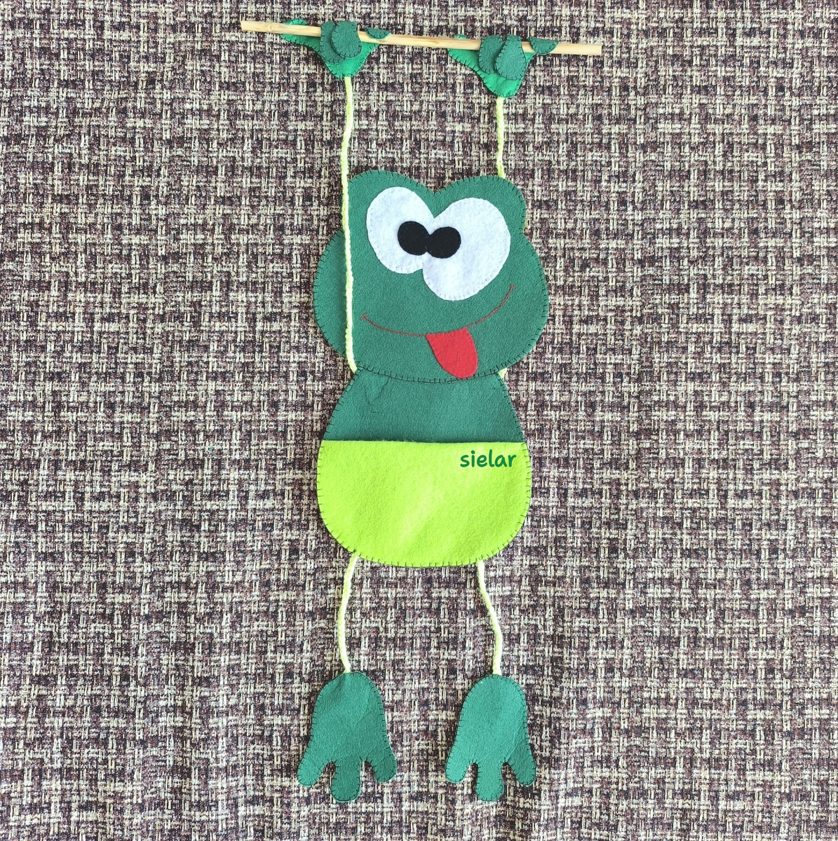 Я сшила дочке органайзер из фетра в виде лягушки.