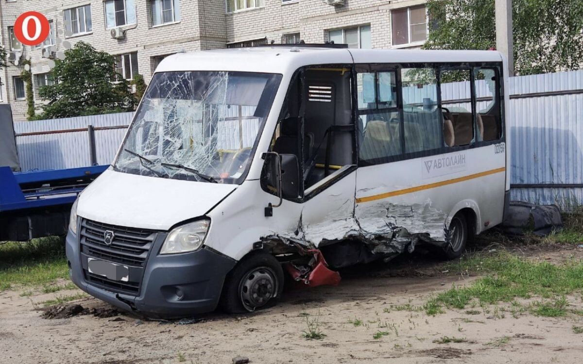 Разбитое стекло и смятый кузов. Как выглядит маршрутка, попавшая в аварию с Mercedes в центре Воронежа