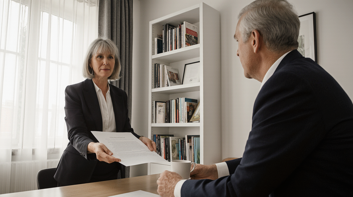 Дверь закрылась ещё тише, чем в прошлый раз. А я сидела и смотрела на папку, которую не могла заставить себя открыть. Потому что понимала: внутри не просто юридический документ. Внутри — конец всего, что могло бы быть между нами.
