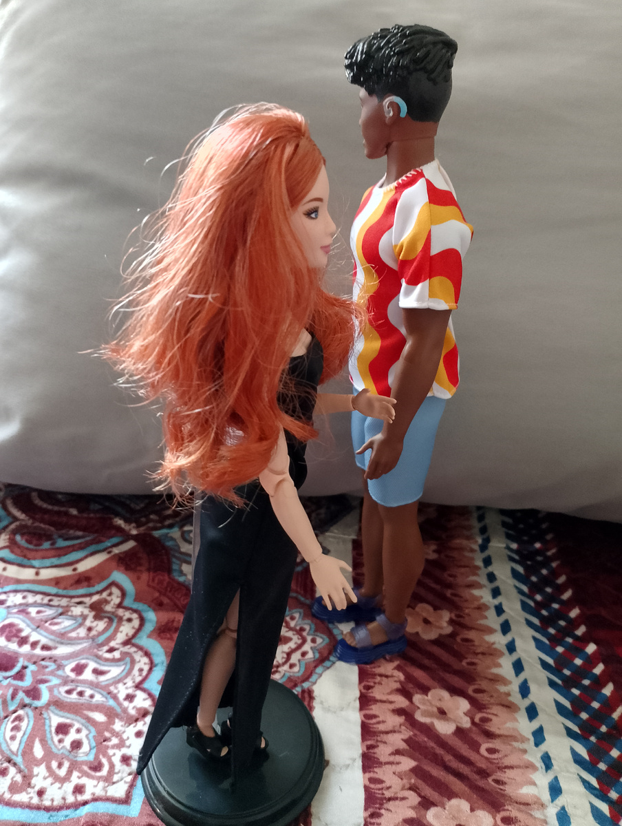 Здравствуйте! Пока я не подготовила рассказ о шарах, расскажу о странном сне нового жильца кукольного шкафа, Бориса. Приснилось ему, что он куда-то идёт в каком-то странном незнакомом месте. Как обычно во снах. И недалеко от него ему навстречу идёт очень красивая рыжеволосая молодая женщина в чёрном платье. И кажется ему, будто он её уже видел, только где и когда? Но вдруг она поворачивается и смотрит на него и улыбается так приветливо и сладко. И он тоже улыбается во весь рот, как мальчишка. А потом и вовсе они останавливаются и смотрят друг на друга И тут он проснулся и долго думал о своём странном сне и пытался вспомнить, где же он видел раньше эту красавицу. Разве что в корзине заказов на "Озоне". Хотя так и было. А фото мне вдруг навеяли такую фантазию. Но на месте Лейлы я бы не расслаблялась. Зиночка может увести этого хорошего парня на раз-два. А Борис хороший парень, такие на дороге не валяются. И как знать, может быть, с Лейлой он и не надолго. А может быть, рыжа
