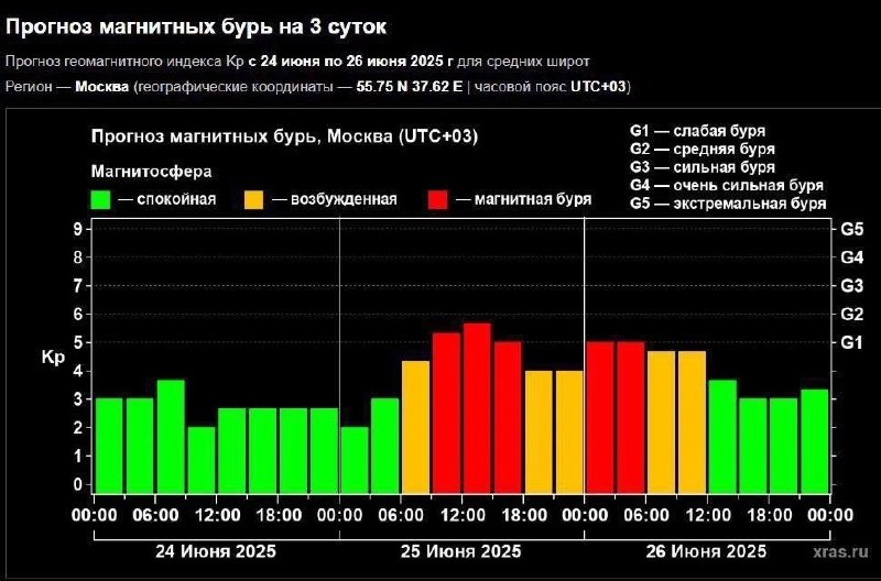 😵💫 Сильная магнитная буря ударит по Земле в ближайшие сутки — со среды по пятницу её мощь только усилится.