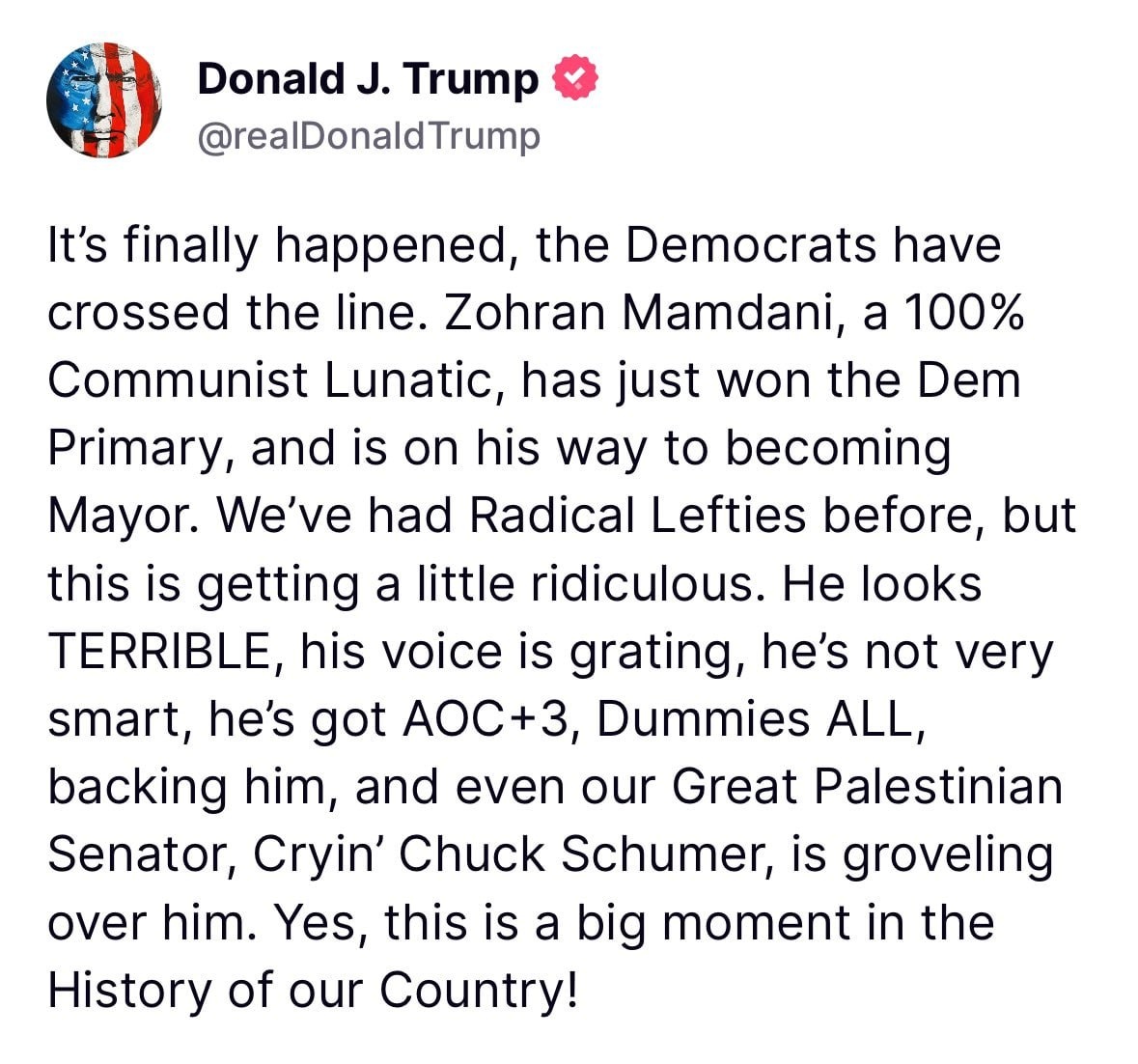 Democrats chose a ‘100% Communist LUNATIC’ – Trump weighs in on NY mayor primary