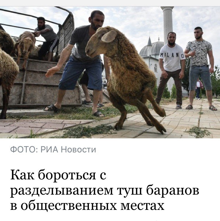 🐏🐏🐏 Как-то примитивно выглядит техзадание России в наши дни. В двадцатом веке мы боролись за победу коммунизма, потом за мир во всем мире, а в двадцать первом боремся с разделыванием туш баранов. Эх, знал бы товарищ Сталин...
