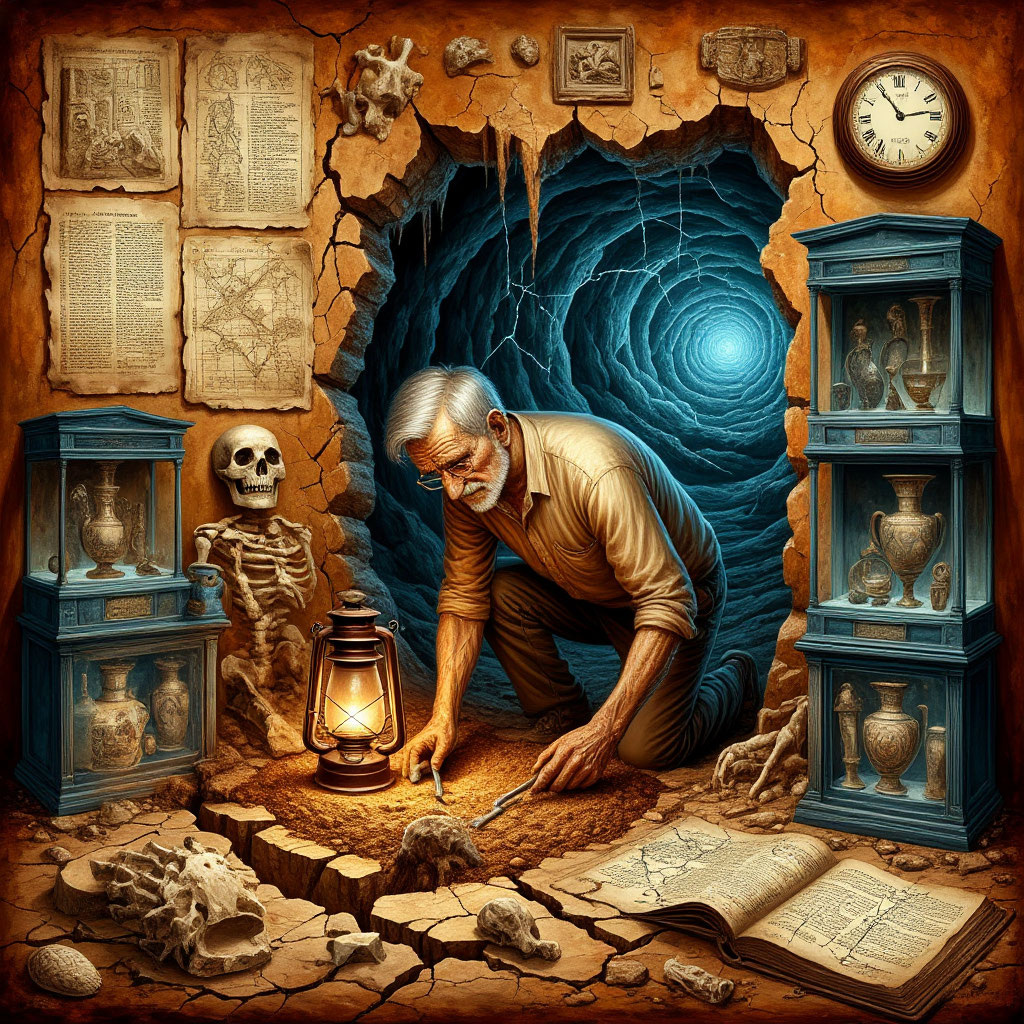 P.S. Говорят, где-то в глубинах, под всеми слоями, лежит зеркало. В нём отражается тот, кто копает. Присмотритесь — может, это вы в семь лет, с фонариком и лопаткой? Или вы в девяносто, с лицом, изрезанным картами всех внутренних странствий? Зеркало молчит. Но его стекло тёплое, как дыхани