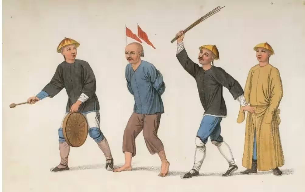 - В династию Цин (1644–1912) преступников, осуждённых за кражи или государственные преступления, часто выводили на улицы с табличкой, описывающей их преступление.