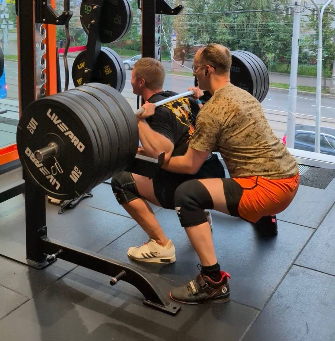 НОГИ и ПЛАНЫ 🦵 Мной принято решение, раз уж после отпуска распоясался буду плавно набирать, как можно чище. Не до веса в кг, а до силовых. Потом уже сушиться. 🍱 По БЖУ сейчас: 180/75/350 🎯 Также, цель усилить ноги, вот здесь про их объем. Буду делать 2 приседа, один как обычно тяжелый, один, вместо какого-либо кардио, на объем минут на 20-30. Типо 120/10х10. ✅ А так, по ТРЕНИРОВКЕ СЕГОДНЯ БЫЛО: 1. Присед (без наколенников): 20х20, 60х10, 100/2х6, 150/5х8. Очень доволен. Все в пол. 2. Румынская тяга с гантелями по 38: 3х10. 3. Разгибание ног сидя: 70/3х10. 4. Сгибание ног лёжа: 40/3х10. 5. Глубокий присед с диска с гирей в руках: 24/3х10. 6. Кардио 40 минут, велосипед #моятренировка #моятренировка102