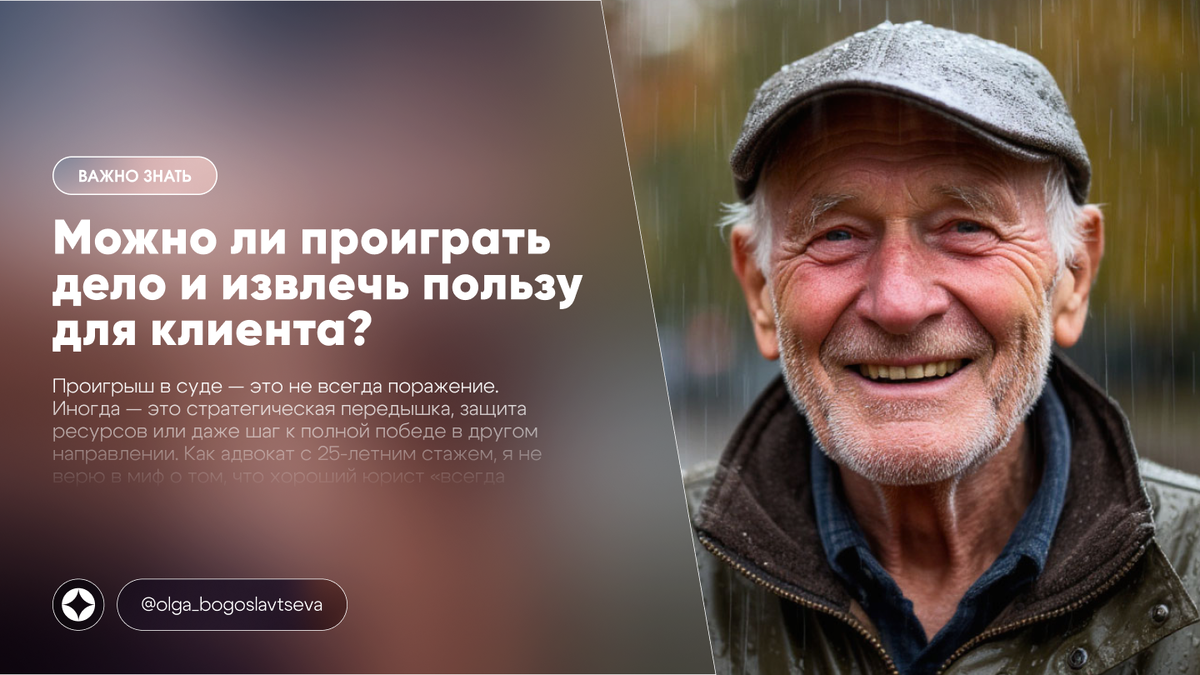 Как адвокат с 25-летним стажем, я не верю в миф о том, что хороший юрист «всегда выигрывает». Профессионализм — это не только победы, но и умение минимизировать последствия и выстроить защитную позицию, когда выиграть объективно невозможно.
