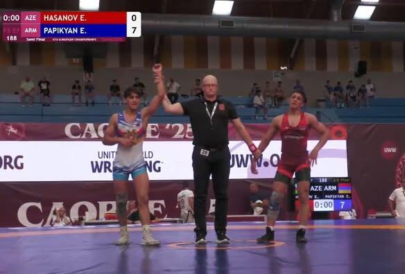 Три армянских борца прошли в финал чемпионата Европы U15 по вольной борьбе в Италии. В весовой категории 57 кг представители Армении Эрик Папикян и Тигран Колотян встретятся в финале. В полуфинале Папикян и Колотян одержали победы над борцами из Азербайджана Эльханом Гасановым и Муразом Хусейновым соответственно. Артур Мкртчян в весовой категории 75 кг в полуфинале одержал победу над представителем Грузии Георгием Гогиберидзе и в финале встретится с борцом из России Амалем Унароковым. Представители Армении Арен Мирзоян (52 кг) и Гамлет Антонян (62 кг) поборются за бронзовые медали. Турнир проходит 25-28 июня в итальянском Каорле.