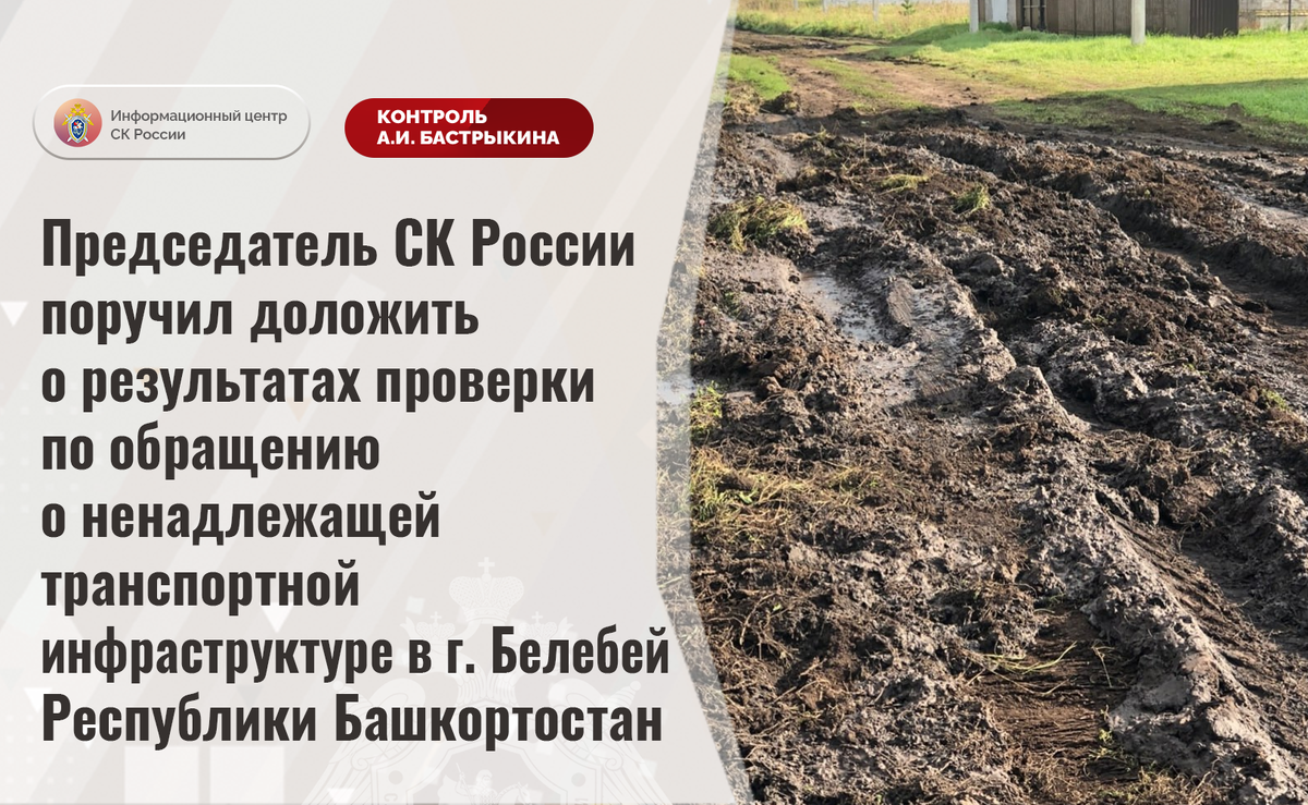 В Информационный центр СК России поступило обращение о ненадлежащей транспортной инфраструктуре в микрорайоне Чайковка города Белебей Республики Башкортостан, в котором более 14 лет назад многодетным семьям и другим гражданам, нуждающимся в улучшении жилищных условий, предоставлены земельные участки для индивидуального жилищного строительства. Дороги на нескольких улицах микрорайона не имеют асфальтового покрытия, на их поверхностях образовались многочисленные ямы, грунтовые полотна при выпадении осадков размываются. В связи с этим проезд транспортных средств, в том числе экстренных служб, к домовладениям граждан затруднен. Обращения в различные инстанции результатов не принесли.