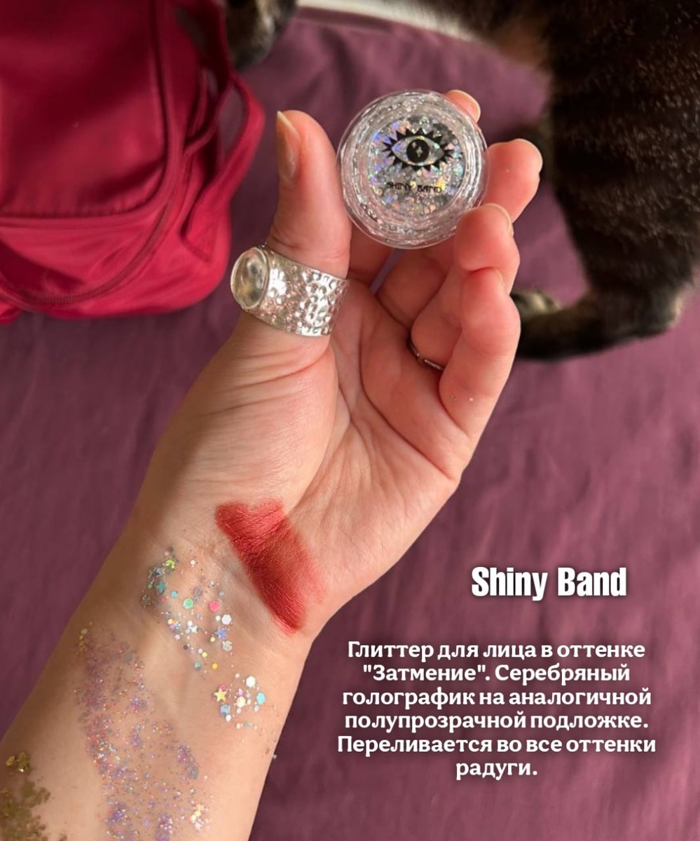 В последнее время мой муж на меня ругается. Его достали блёстки, которые разбросаны по всему дому. Ну и что, что ты можешь взяться за ручку двери, а потом отмывать руку целый час от последствий скраба с хайлайтером? Ну и что, что в трусах опять нашёл стразик, который я потеряла две недели назад? Это искусство, чем-то нужно жертвовать! Это предисловие к великолепным глиттерам! Я крепко подсела на все виды страз, чувствую себя сорокой, потому что постоянно МАЛО. Но глиттеры с крупными блёстками нельзя использовать для глаз — просто небольшое напоминание. Хочется, но нельзя! (Недавно заметила, что их добавляют в красивые причёски, как вариант) Тени Magic Dust (Rubi) — около 1100 рублей. ♥Глиттер Shiny Band (Затмение) — около 240 рублей. ♥Глиттер Shiny Band (Эйфория) — около 240 рублей. ♥Глиттер Shiny Band (Платиновое золото) — около 240 рублей. ♥Глиттер Shiny Band (Хамелеон) — около 240 рублей. Можно купить глиттеры сразу комплектом из 4 штук, в таком случае комплект обойдётся примерно в