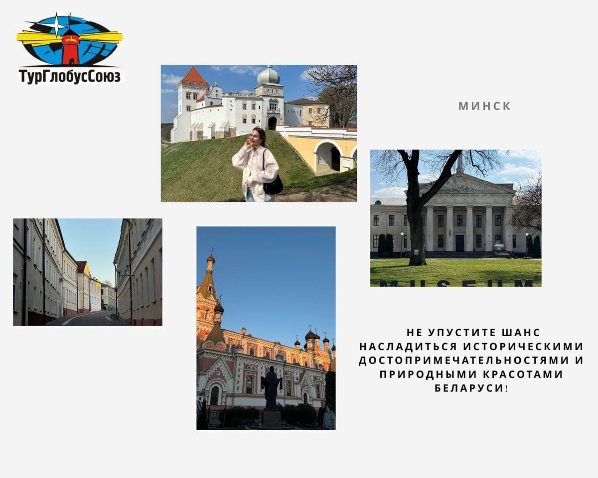 📎 Откройте для себя удивительную Беларусь! Погрузитесь в мир живописных пейзажей, исторических замков и богатой культуры. 🇧🇾 🔍 Прогуляйтесь по уютным улочкам Минска, восхититесь красотой озера Нарочь и узнайте тайны старинных крепостей. ⏺️ Попробуйте уникальные белорусские блюда и насладитесь теплым гостеприимством местных жителей! 🗓 Бронируйте свой тур уже сегодня и откройте для себя новую