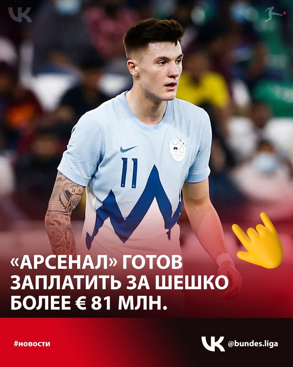 💰 «Арсенал» готов заплатить за Шешко более € 81 млн — The Sun 22-летний словенский форвард «Лейпцига» Беньямин Шешко всё ближе к переходу в «Арсенал». Об этом сообщает таблоид The Sun. 💬 По информации источника, в подписании футболиста заинтересован лично главный тренер команды Микель Артета. Также сообщается, что «Арсенал» готов заплатить за него более € 81 млн.