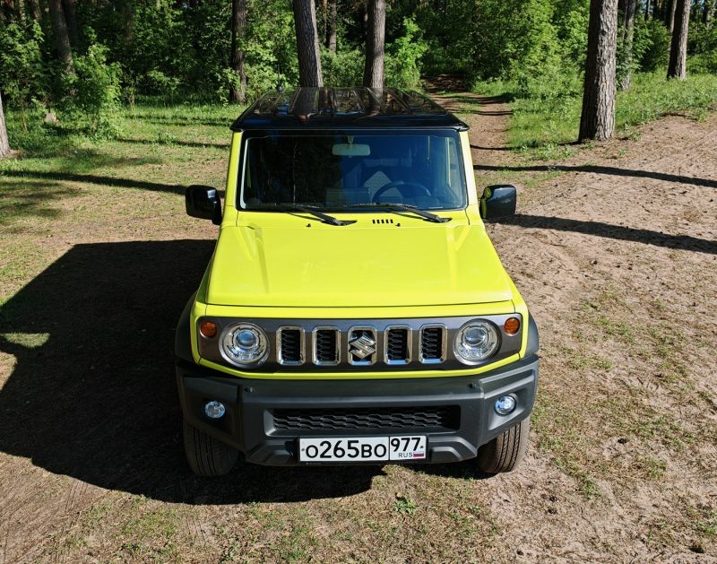 А внешность у этой модели самая что ни на есть запоминающаяся. Еще и на тесте был вариант с желтым (цвет ближе к лимонному) кузовом и черной крышей. Пропорции машины немного поменялись, но это видно не со всех ракурсов, да и в целом автомобиль остался и компактным, и гармоничным. Неудивительно, что многие девушки выбирают Jimny, совершенно не имея в виду его внедорожный потенциал.