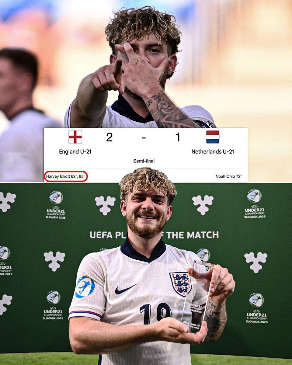 Дубль Харви Эллиотта из "Ливерпуля" вывел молодежную сборную Англии в финал Чемпионата Европы U-21 ☝️