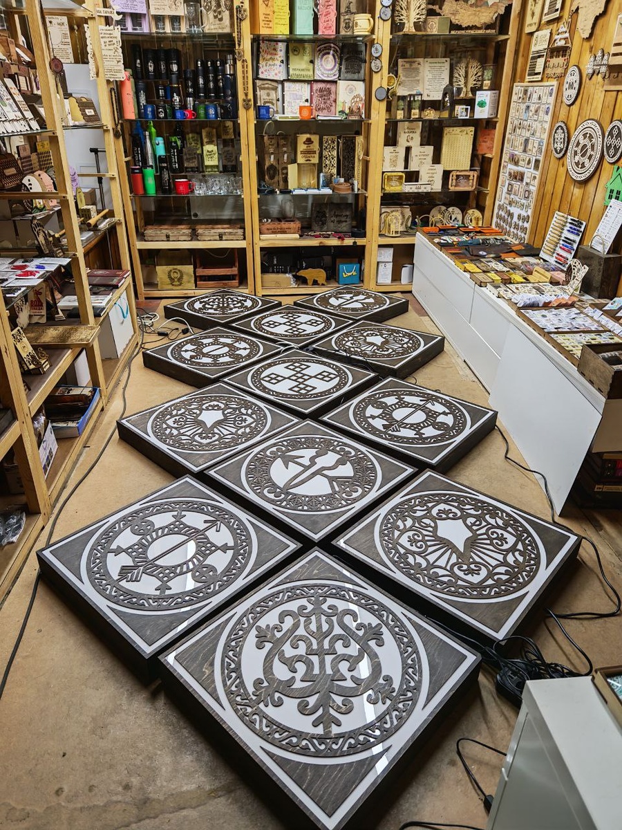 Вчера закончили большую работу😍 12 деревянных светильников-оберегов, которые будут установлены в двух главных урасах (главы Нерюнгринского