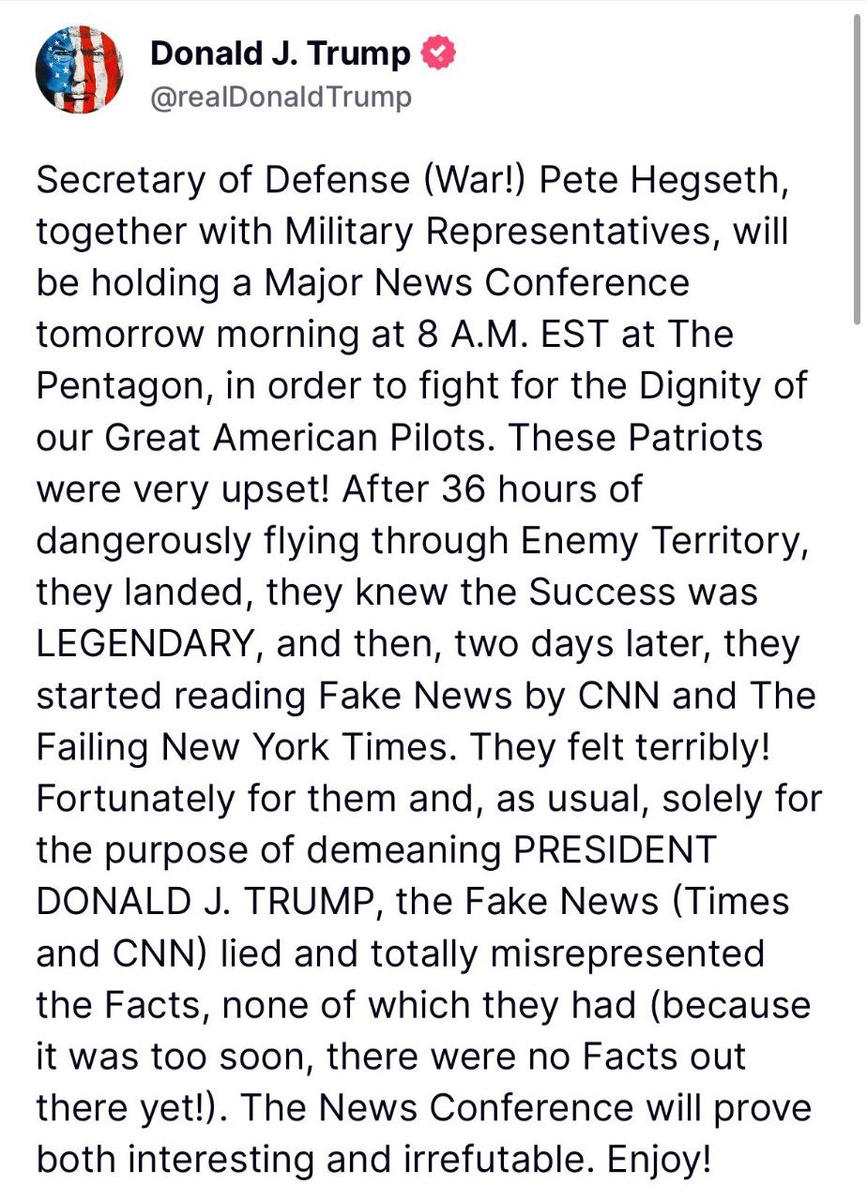 Trump announces Hegseth's MAJOR news conference to 'fight for DIGNITY of Great American Pilots'