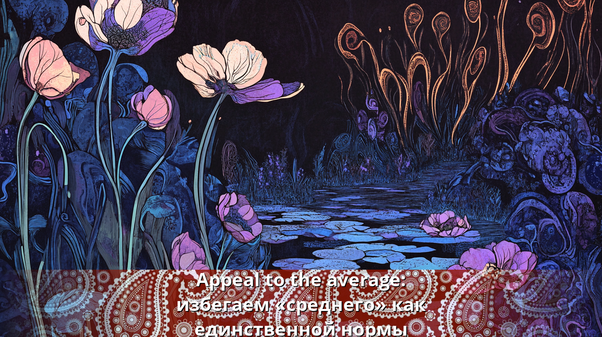 Чтобы выйти из этого круговорота, важно перестать воспринимать «среднее» как единственную норму и понять, что счастье не кроется в том, чтобы быть как все. Люди, следуя внешним стандартам, могут утратить свою способность наслаждаться жизнью, не замечая того, что истинное счастье лежит в поиске внутренней гармонии, а не в соответствии с общественными ожиданиями. Каждый человек уникален, и его счастье зависит от того, насколько он честен с собой и способен искать свой собственный путь.
