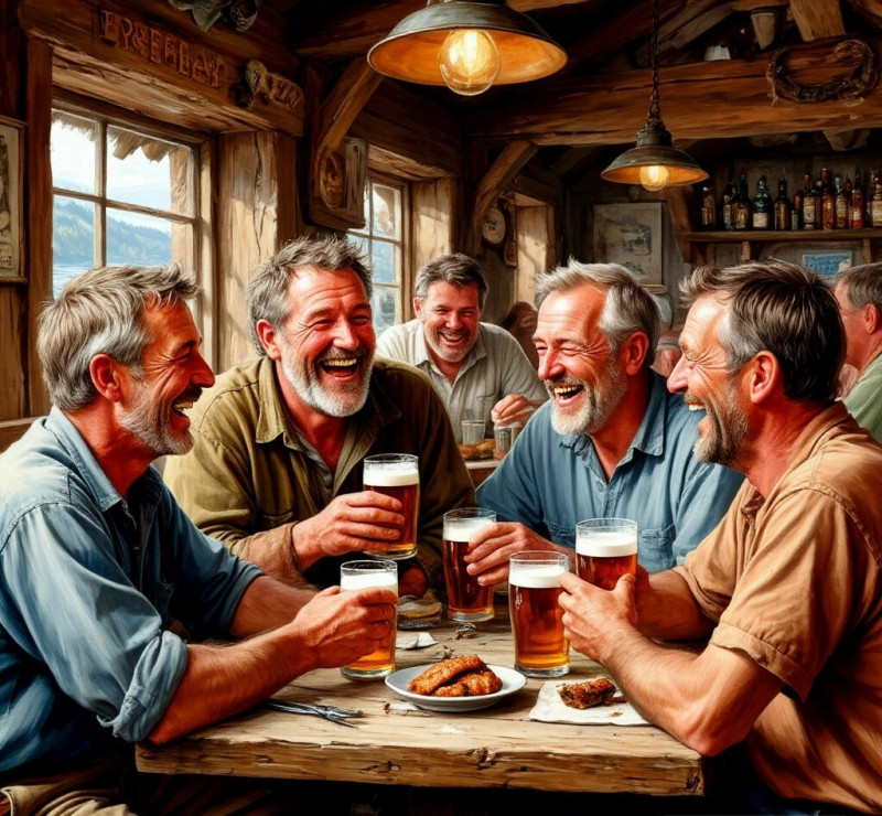 За окном «Последней рыбацкой» давно стемнело. Огни сейнеров на рейде казались редкими бусинками, рассыпанными по чёрному бархату воды. Ветер гнал по пустынной улице обёртку от ириски и пустую пачку Беломора. А внутри всё гудело, парило, спорило, пело фальшиво, хохотало до слёз, швыряло воблой, топало ногами в такт и жило – устало, шумно, без пафоса, но яростно и до последней капли. Просто. Как мокрая, тяжёлая сеть, брошенная на рассвете на холодный причал. Как последняя хрустящая косточка воблы на дне миски. Как этот самый вечер, который ещё не кончился, но каждому было ясно – завтра снова в море. Ранним, пронизывающе холодным, ещё тёмным утром. А пока... пока здесь, в «Последней рыбацкой», была их крепость. Их шумная, липкая, пропахшая рыбой, пивом, потом и махоркой гавань. Где можно быть самим собой – усталым, пьяным, брюзгливым, но своим. Настоящим.