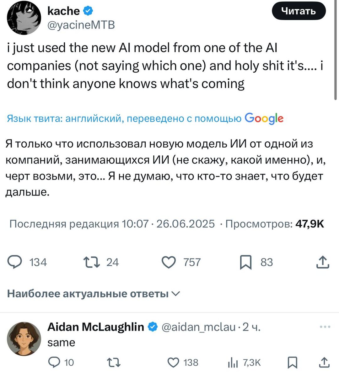 Бывший сотрудник xai, на которого подписался Сэм недавно, пишет о чем-то невероятном, что он попробовал