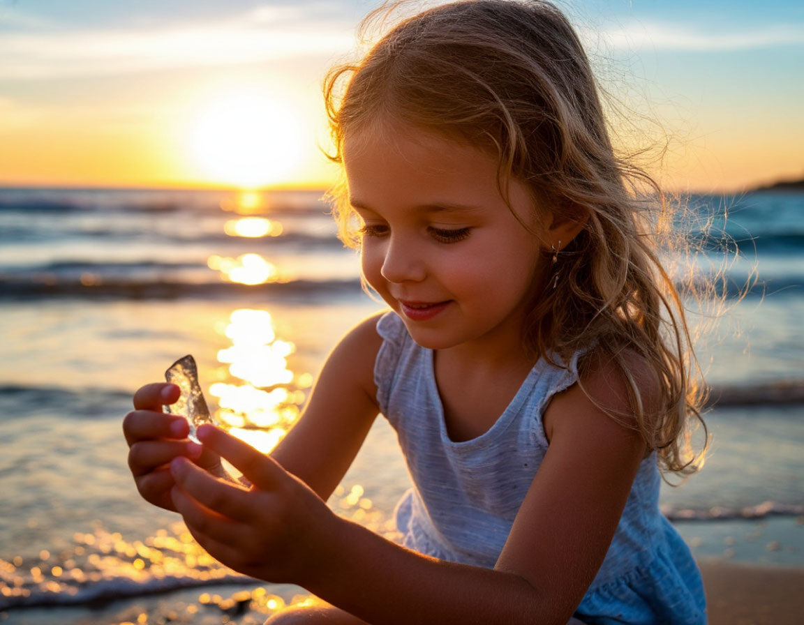 Девочка осторожно подняла находку. Камень был тёплым на ощупь, будто хранил в себе тепло далёких морей. Когда Саша поднесла его к уху, ей показалось, что она слышит тихий шёпот волн и пение морских птиц.