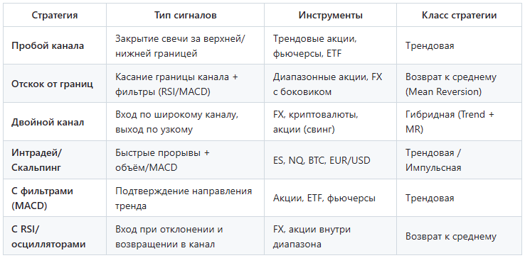 - Недостатки: риск ложных пробоев в флетовых рынках. Особенно эффективна на трендовых активах (фьючерсы, трендовые акции, FX ).