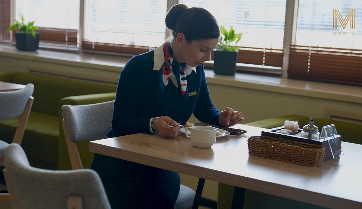 Ранним утром в ресторане с говорящим названием «Полёт» и соответствующей атмосферой встречают экипаж воздушного судна, – у пилотов, бортпроводников и всех, кто заботится о комфорте и безопасности авиапассажиров, впереди насыщенный рабочий день, требующий предельного внимания и ответственного отношения к деталям. Чтобы оставаться энергичными, важно грамотно подходить к вопросам питания. Хорошо помогают завтраки, организованные в форме шведского стола. А в помещении по соседству – цехе бортового питания главного аэропорта Камчатки – тем временем заняты подготовкой блюд для пассажиров очередного авиарейса. Именно здесь создаётся та самая «самолётная» еда, в том числе пирожные со сладкой прослойкой и круглые булочки, отлично сочетающиеся на большой высоте со сливочным маслом и чашечкой кофе с молоком. «У нас с каждой авиакомпанией согласована спецификация меню. И чётко обозначено, какие блюда мы должны им скомплектовать. Повара готовят всё, что необходимо из горячего питания и закусок, а к