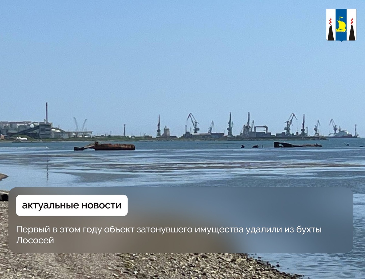 🍃 Подрядная организация удалила из бухты Лососей Корсаковского района первый из пяти затонувших объектов, запланированных к утилизации в