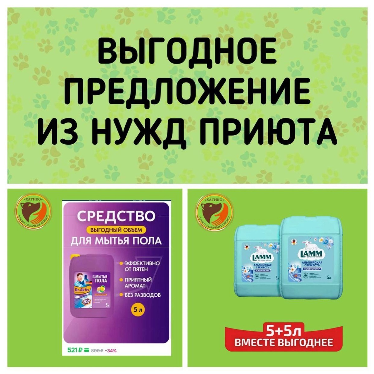 Друзья! Вы можете самостоятельно заказать для приюта бытовую химию на пункт выдачи Ozon по адресу ул. Гагарина, 45 После того, как товар будет доступен к выдаче скинуть нам в ЛИЧКУ код для получения. Тел для связи 8-951-479-75-89 Сегодня есть выгодные предложения на средства для мытья пола и стирки. ✅https://ozon.ru/t/J2wtWx6 LAMM Набор Альпийская свежесть кондиционер для белья универсальный концентрат ополаскиватель для всех типов тканей 200 стирок 5л + 5л ✅https://ozon.ru/t/ga74Eo6 Средство для Мытья Пола Dr.Aktiv, Морозный Цитрус, для Всех Типов Полов, 5 л