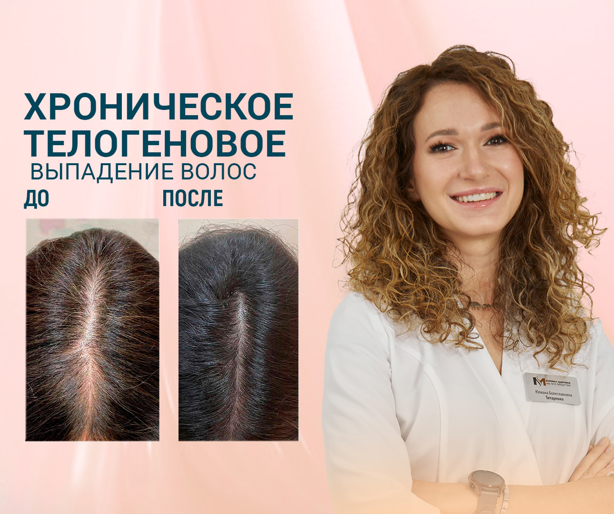 Представляем клинический случай из практики специалиста клиники Здоровья им. М.Я. Мудрова, к.м.н., врача дерматолога, трихолога, терапевта, трансплантолога Ю.Б. Титаренко. Пациентка обратилась с жалобами на интенсивное выпадение волос в течение длительного времени. На основание осмотра, сбора анамнеза и аппаратного исследования был установлен диагноз - хроническое телогеновое выпадение волос. Назначена комплексная терапия, сочетающая клинические процедуры и применение топических лосьонов в домашних условиях: - Клинические процедуры: карбокситерапия курсом - Комплекс средств для домашнего применения, в том числе лосьон Био-энерджи Наиболее высокой эффективности удалось добиться при сочетании процедуры карбокситерапии и в домашних условиях лосьона Био-энерджи. Длительность лечения 1 год. В настоящее время пациентке назначено применение топических средств в качестве поддерживающей терапии. Официальный сайт: https://time-to-grow.pro/