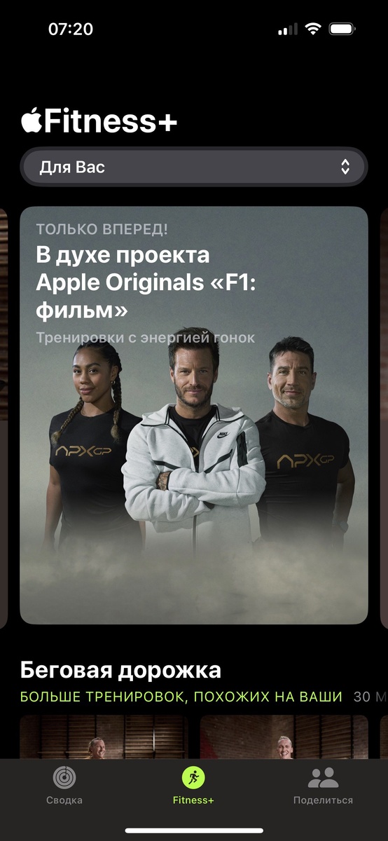 Маркетинг Apple добрался и до сервиса Fitness+ для продвижения нового блокбастера «Формула-1» с Брэдом Питтом в главной роли