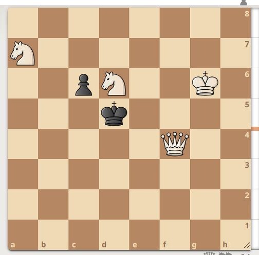 Автор задачи Е. Богданов, 2008 год. Белый конь на d6 под боем. Ход белых, белые начинают и ставят мат в 2 хода. Подписывайтесь и ставьте лайк. Первый верный ход смотрите в галерее. Более мощная задача тут >>>