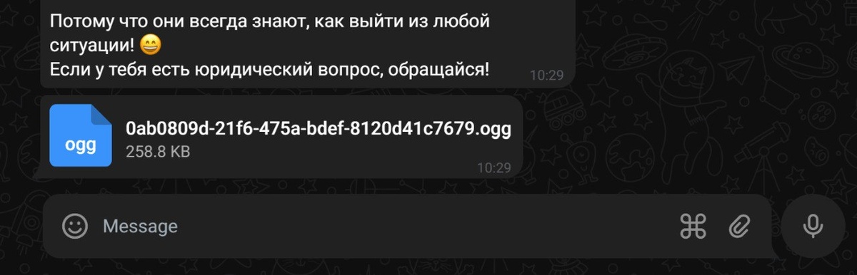 🎙️ Новая магическая команда: ##OGG:ON## — теперь бот отвечает голосовыми в формате OGG Добавьте всего одну строчку в промпт бота, и все его текстовые ответы автоматически превратятся в голосовые сообщения в формате OGG. Никаких сложных настроек — просто включите и наслаждайтесь живым общением! Как это работает? 1️⃣ Добавьте в промпт бота инструкцию: undefined ##OGG:ON## 2️⃣ Бот начнет отвечать OGG файлом3️⃣ Формат OGG — оптимален для Telegram и других мессенджеров. #ProTalk #ГолосовыеБоты #Автоматизация #OGG