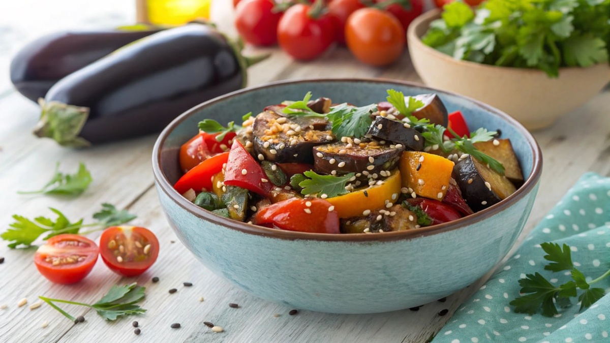 🍆 САЛАТ С БАКЛАЖАНАМИ И ПОМИДОРАМИ — ЛЕТНЯЯ СИМФОНИЯ ВКУСОВ 🍅