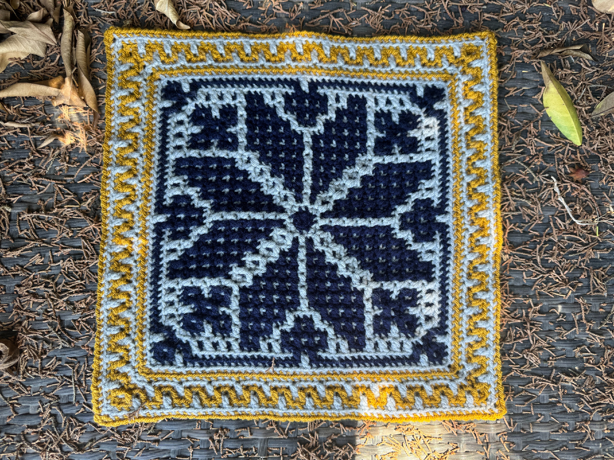 Вязание квадратных мотивов позволяет нескучно провести свободное время и , по ощущениям, быстрее связать целый плед! А если вы овладеете техникой мозаичного вязания крючком, то процесс станет для вас еще более азартным и захватывающим. Простая техника вязания, в основе которой – чередование двух базовых петель в крючке – столбика без накида и столбика с накидом. Поскольку особых знаний и технических навыков такой вид вязания не требует, его сможет освоить в короткий срок даже новичок. Несмотря на простоту вязания, мозаика не будет для вас скучным процессом, поскольку чередование цветов позволит создавать сотни неповторяющихся узоров и орнаментов. Данный квадратный мотив вяжется из центра в технике центрового мозаичного вязания. Начинается процесс с кольца амигуруми и далее, постепенно расширяясь, полотно достигает желаемых размеров. Если вы еще не знакомы с мозаикой крючком, то начните с моих пошаговых уроков: Для вязания этого мотива вам понадобится пройти урок, посвященный центровой