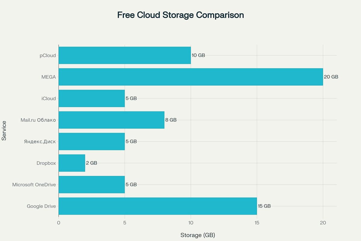 Российские провайдеры занимают средние позиции: Яндекс.Диск предоставляет 5 ГБ, а Mail.ru Облако — 8 ГБ. Особенность последнего заключается в том, что это пространство объединяет почту и файловое хранилище, создавая единую экосистему для пользователей.
