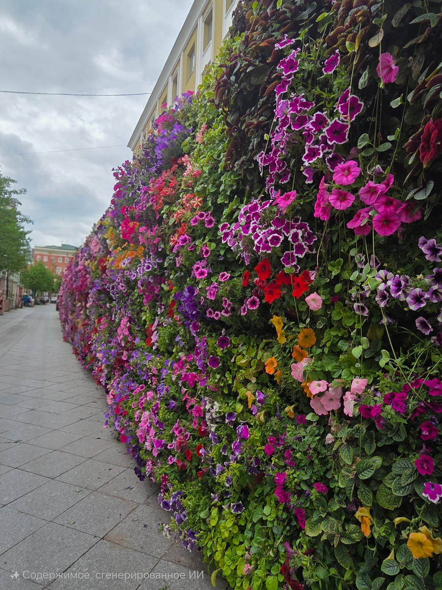 В этом году в центре Москвы на Никольской улице появилась целая живая стена из петуний. Выглядит очень впечатляюще!