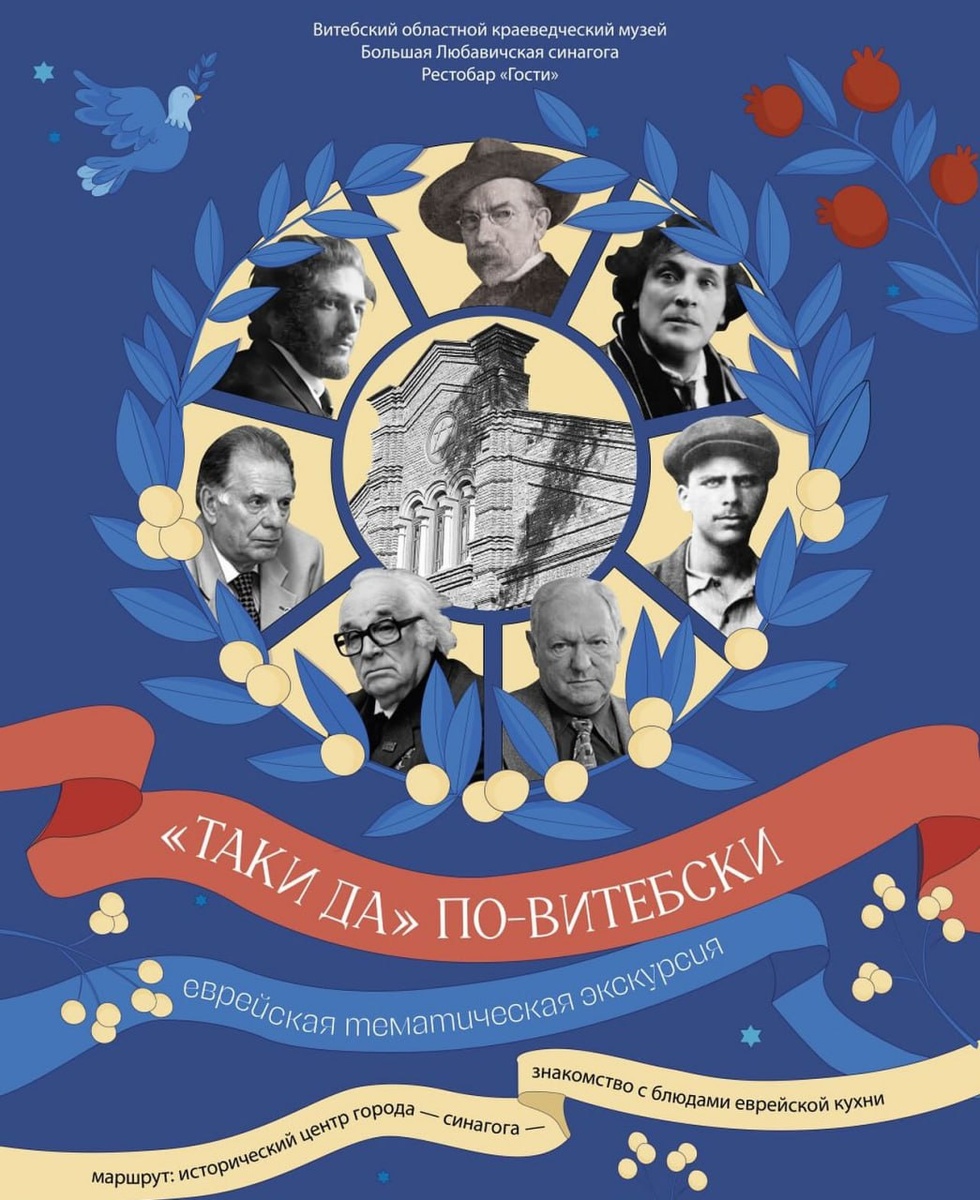 📢Автобусно-пешеходная экскурсия «Таки да по-витебски» На экскурсии гости смогут поговорить и обсудить, заглянуть и отведать. В программе😎 😎Культура и история еврейской общины Витебска. 😎Выдающиеся личности еврейского происхождения, оставившие след в истории города. 😎Большая Любавичская синагога — архитектурное и духовное наследие. 😎Гастрономические традиции еврейской кухни в рестобаре «Гости». *Продолжительность экскурсии — 2 часа. **Сборная группа — от 5 до 16 человек. ⏰️29 июня в 12:00 и в 15:30 💰Стоимость с дегустацией блюд еврейской кухни: взрослый - 40 byn, школьник – 30 byn. Стоимость без дегустациеи: взрослый – 20 byn, школьник – 10 byn. Забронировать и узнать подробности можно у организаторов (Витебский областной краеведческий музей, большая Любавичская синагога, рестобар «Гости»). #витебск_вандруй ☕️ Вандруй | Подписаться