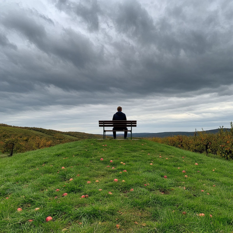 Зеленой горой оказался облезлый холм на самом краю города, за которым тянулся заброшенный парк, заросший старыми яблонями, в который вели ржавые покосившиеся распахнутые навечно ворота. На лысой вершине нашлась одинокая скамейка, неизвестно кем и зачем туда воткнутая. Олег плюхнулся на нее и уставился на серое темное небо, по которому комьями серой неряшливо надерганной ваты, плелись облака.