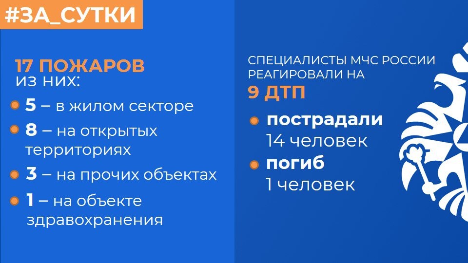☎️ МЧС России: за прошедшие сутки ликвидированы 17 пожаров
