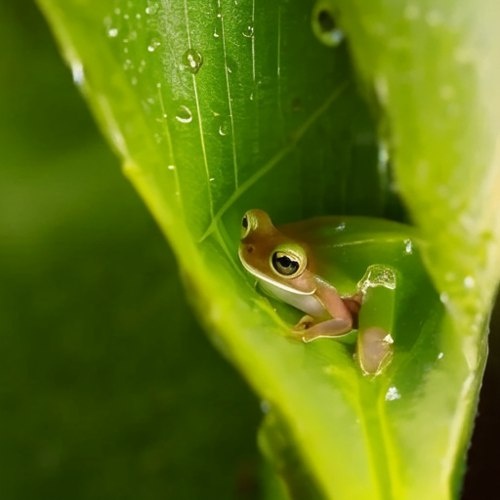 Секрет невидимки: удивительная жизнь хрустальной лягушки В дождевых лесах Коста-Рики обитает чудо эволюции — стеклянная лягушка (Hyalinobatrachium dianae). Ее брюшко и лапки абсолютно прозрачны, словно тончайшее стекло. Сквозь кожу видны бьющееся рубиновое сердце, изящные косточки, даже работа пищевода. Природа подарила ей эту невидимость не для красоты: сидя на листе, лягушка становится почти неотличимой от сверкающей капли воды. Ученые обнаружили, что уникальная ткань почти не преломляет свет — загадка биомимикрии. Ночью самцы поют звонкие серенады, а днем, прижавшись к листу, растворяются в зелени от голодных глаз цапель и змей. Хрупкость обманчива — эти амфибии выживали миллионы лет, маскируясь буквально под воздух.