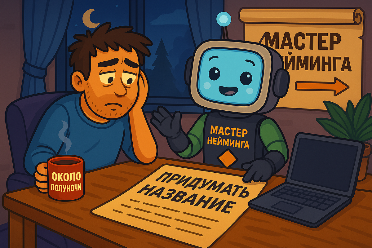 Это случилось ближе к полуночи. Я сидел в кресле с ноутбуком на коленях, пил остывший чай и тупо пялился в документ, где первым пунктом стояло: «Придумать название». Название для нового проекта, который я готовил полтора месяца. Всё было: концепция, УТП, структура. Не было только одного — имени. И это тормозило всё. Я перебирал варианты как школьник на контрольной: что-то смешное, что-то пафосное, какие-то странные латинские корни, аббревиатуры. Ушло три часа. Осталась только злость. Я пошёл мыть посуду и на автомате начал приговаривать вслух: «Ну как тебя звать-то, зараза…» И тут в голове щёлкнуло: зачем я это делаю сам? Почему я не могу просто взять и подключить помощника, который будет думать только об этом? На следующее утро я начал собирать интеллект-карту. Через день — набросал логику. А ещё через пару дней родился он. Я создал его, потому что сам устал гадать, как назвать проект. Мастер нейминга — это GPT-агент, который помогает придумать 20 вариантов названий под твою задачу. Н